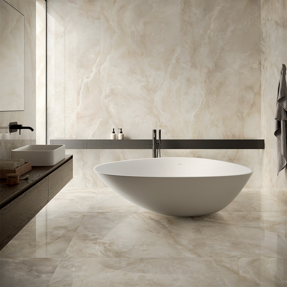 La Majestic Onyx si ispira all’onice, una pietra preziosa dal fascino millenario. La varietà di sfumature e il caratteristico degradé di toni di colore rendono questo prodotto esclusivo, ideale per ambienti sofisticati. La collezione, adatta sia a pavimento che a rivestimento, si distingue per la precisione e l’accurato equilibrio tra venature, dettagli grafici e colori dalle tonalità delicate.