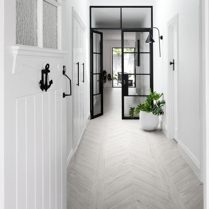 Gres porcellanato effetto legno Marazzi Oltre White 11x54 chevron